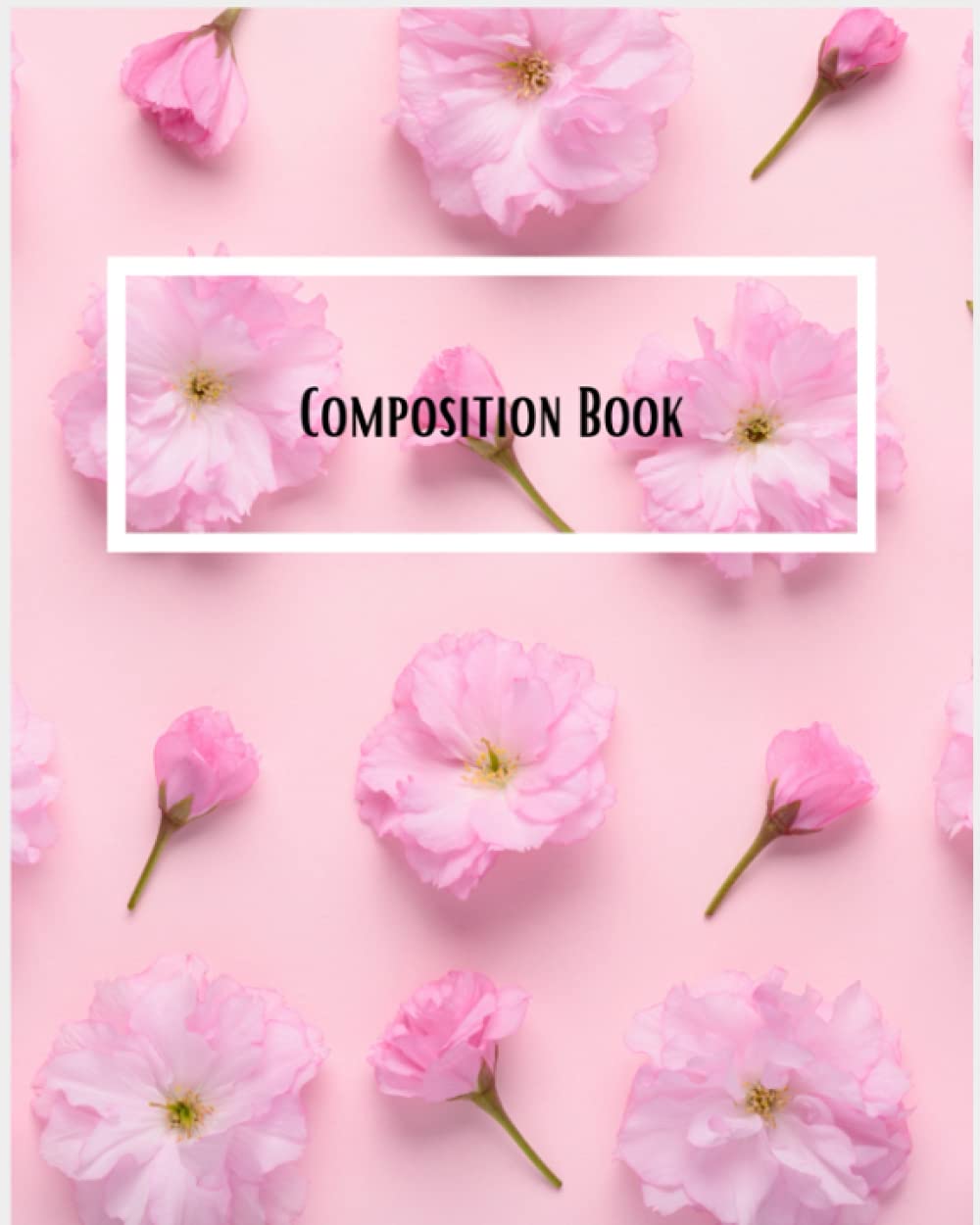 Composition Notebook: Blank Wide Ruled Paper Notebook Floral pink pattern Wide Lined Workbook Journal for Kids Teens or adults.